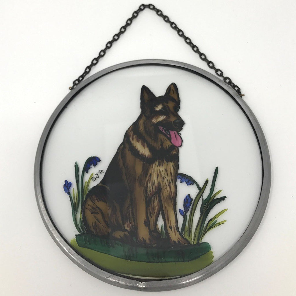 Hand Painted Stained Glass Roundel - Alsatian (6")